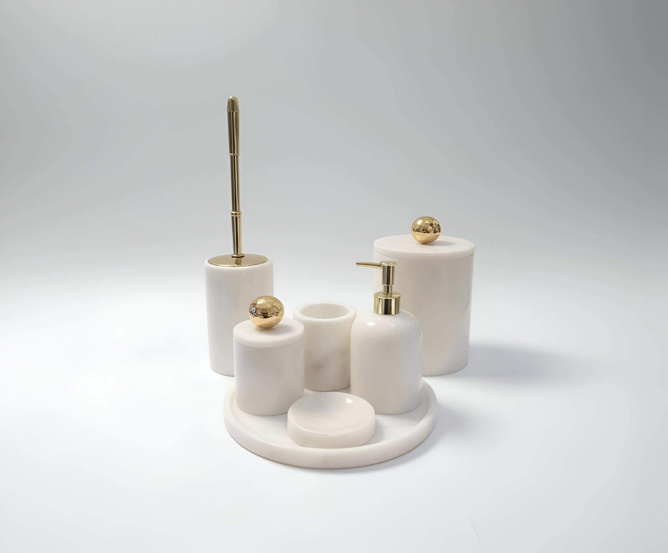 Afyon Beyaz Mermer 7'li Banyo Seti Gold Aksesuar