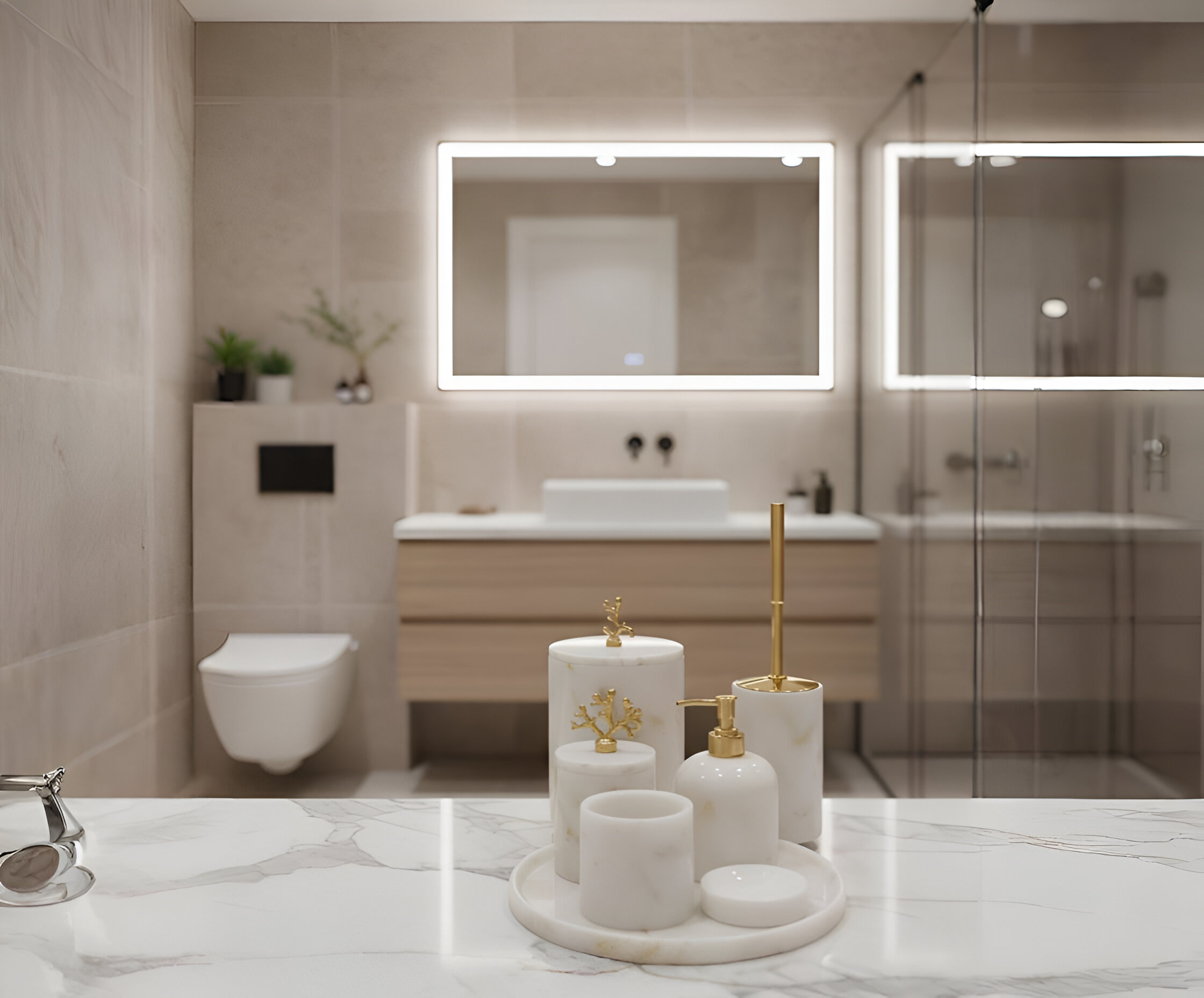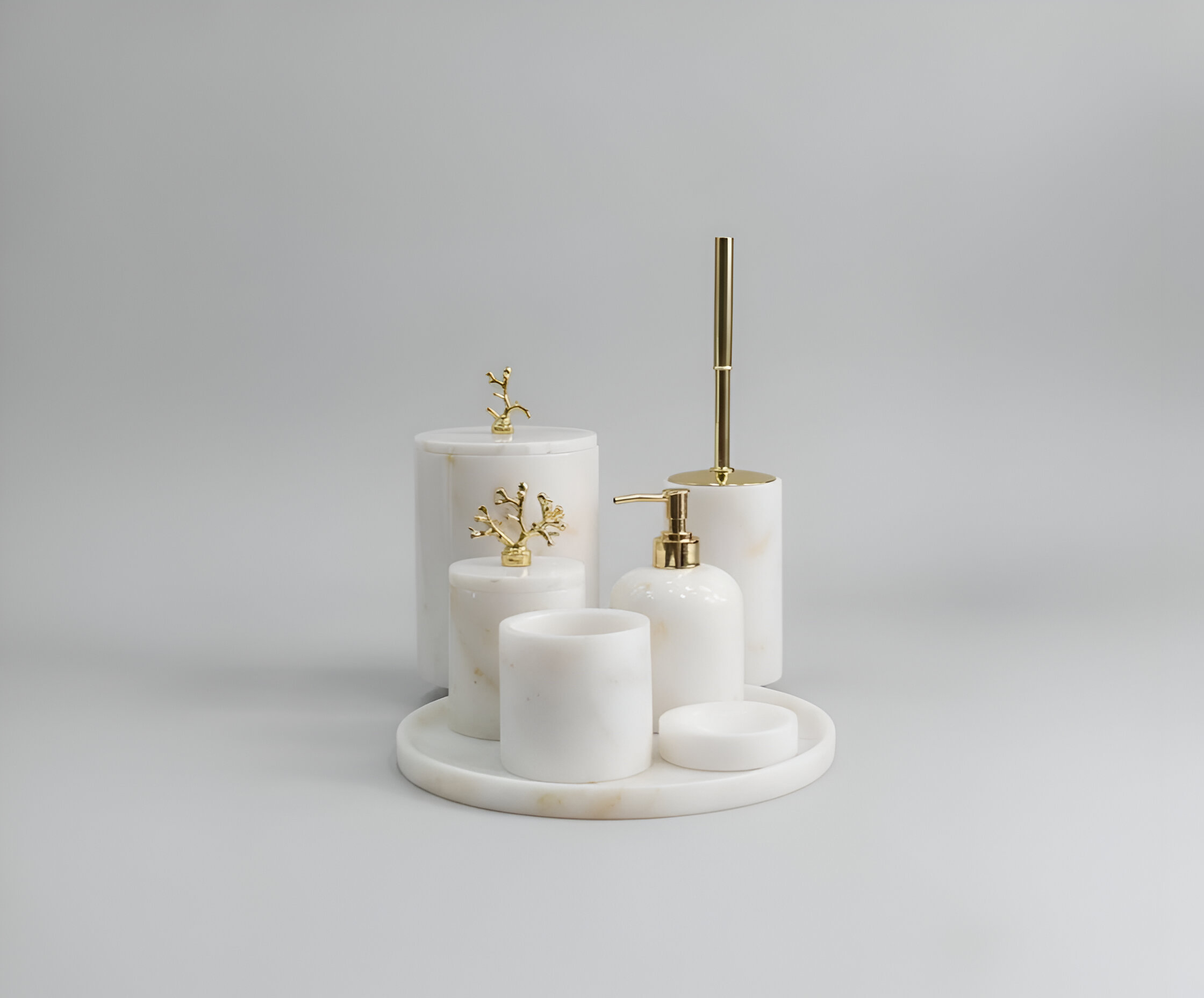 Afyon Beyaz Mermer 7'li Banyo Seti Gold Aksesuar
