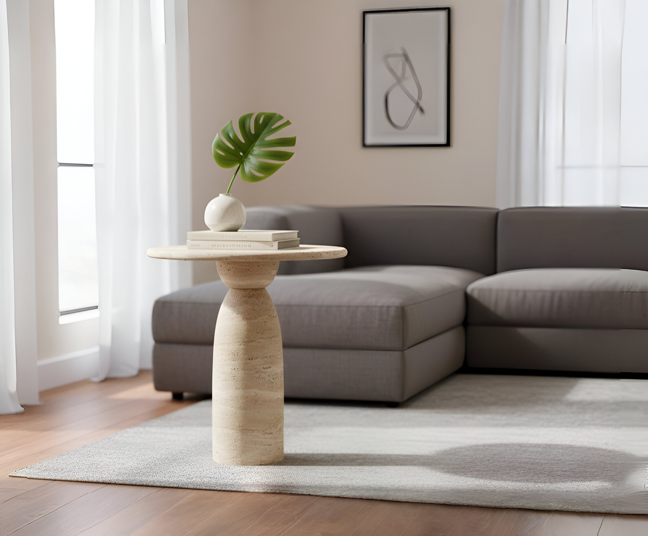 Peçora Traverten Yan Sehpa