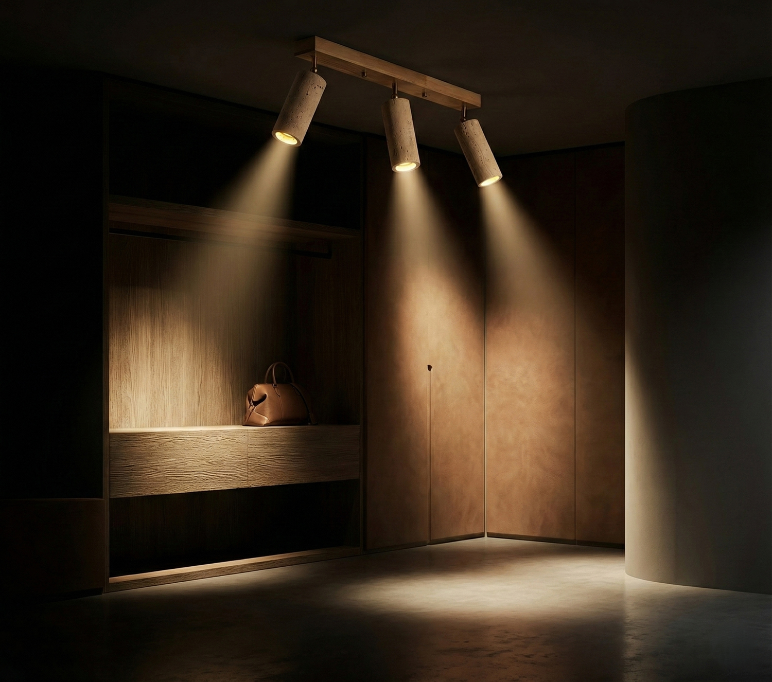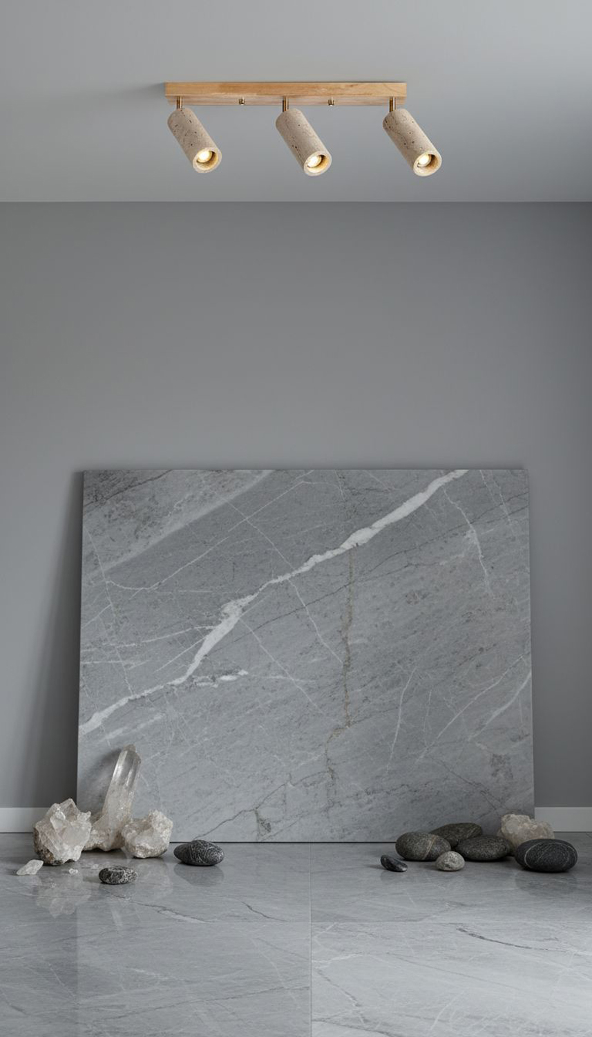Mat yüzeyi ve doğal gözenekli dokusu, ürüne sıcak ve doğal bir karakter kazandırır. Ayarlanabilir spot başlıkları sayesinde ışık yönü ihtiyaca göre kolayca yönlendirilebilir.