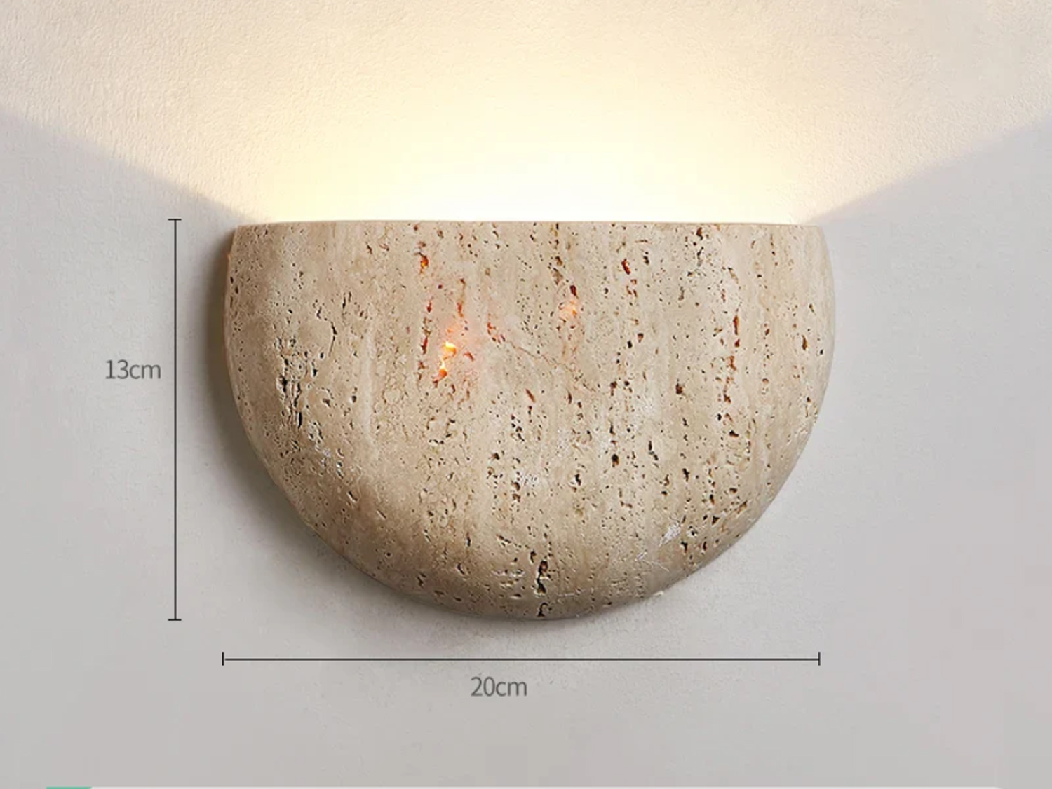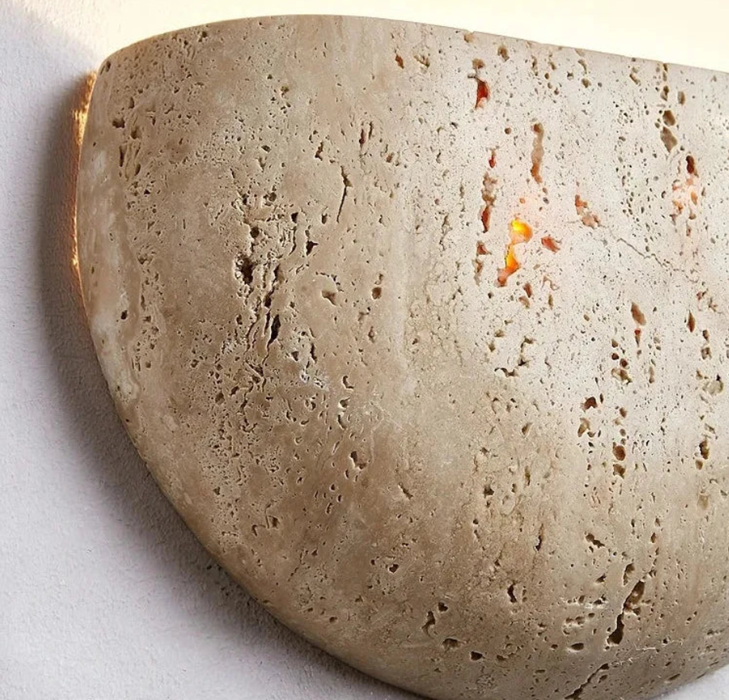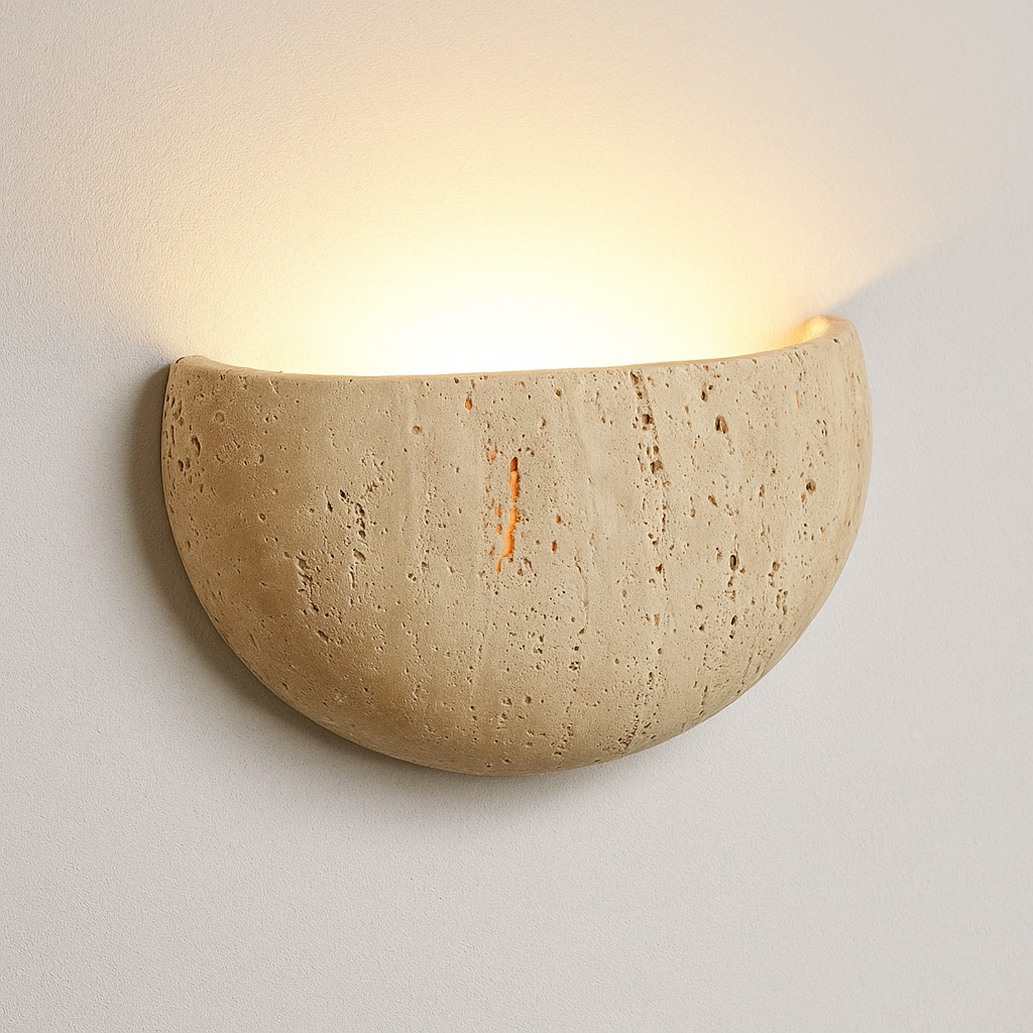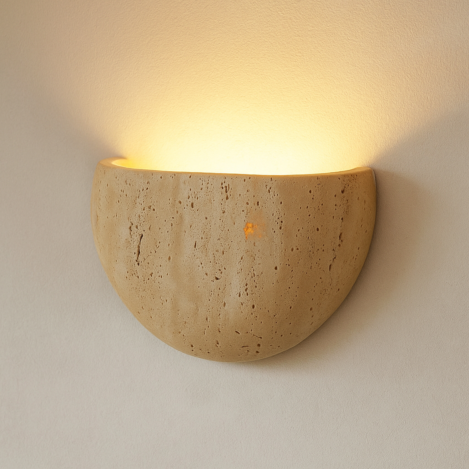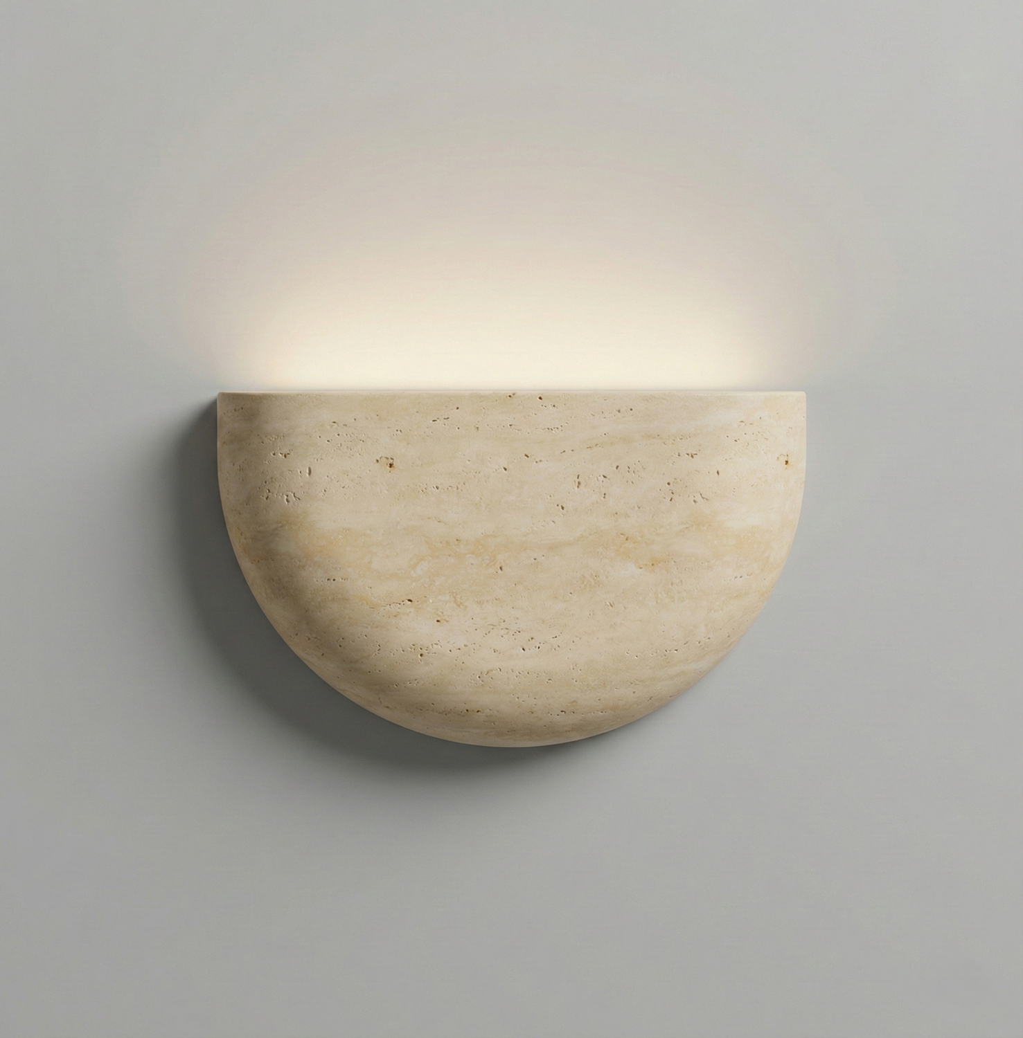 NARVİK Aplik Aydınlatma, yarım formda tasarlanan traverten gövdesiyle duvara yumuşak ve dengeli bir ışık yayılımı sağlar.