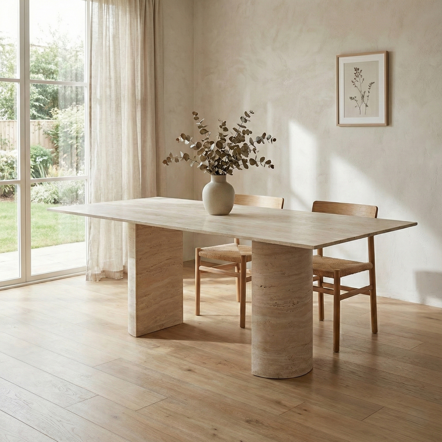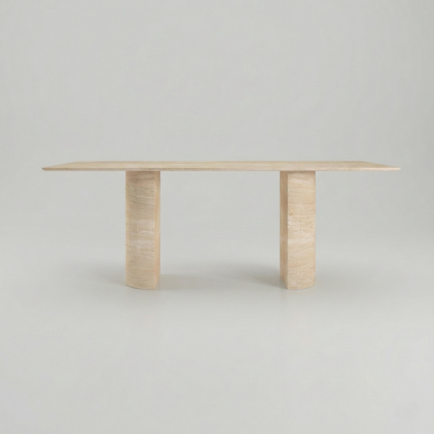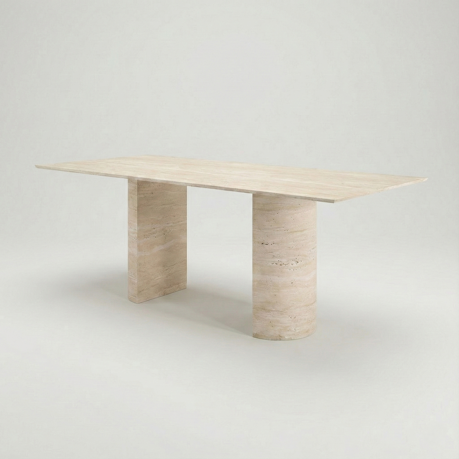 Olivos Blok ve Silindir Ayaklı Traverten Yemek Masası