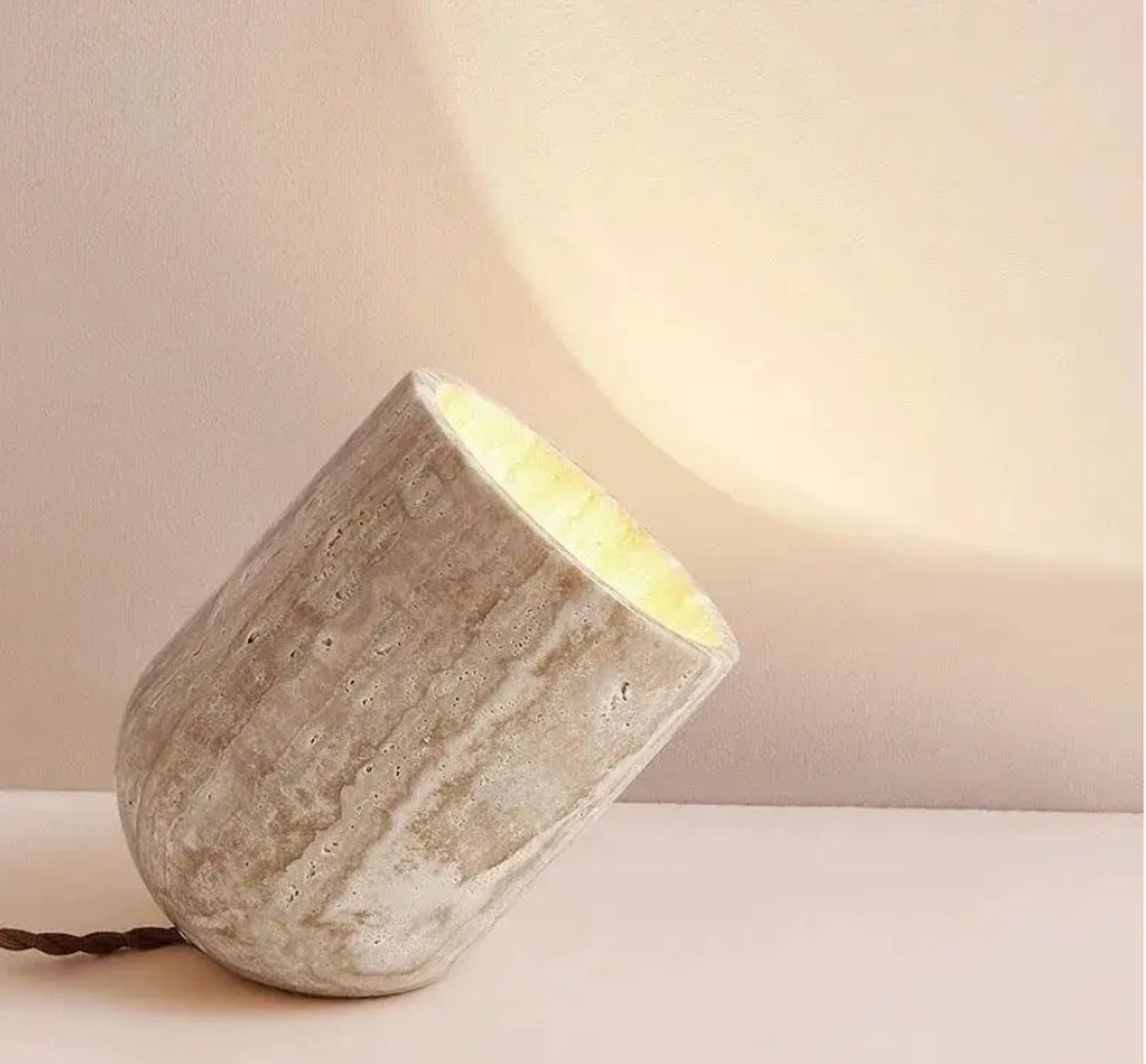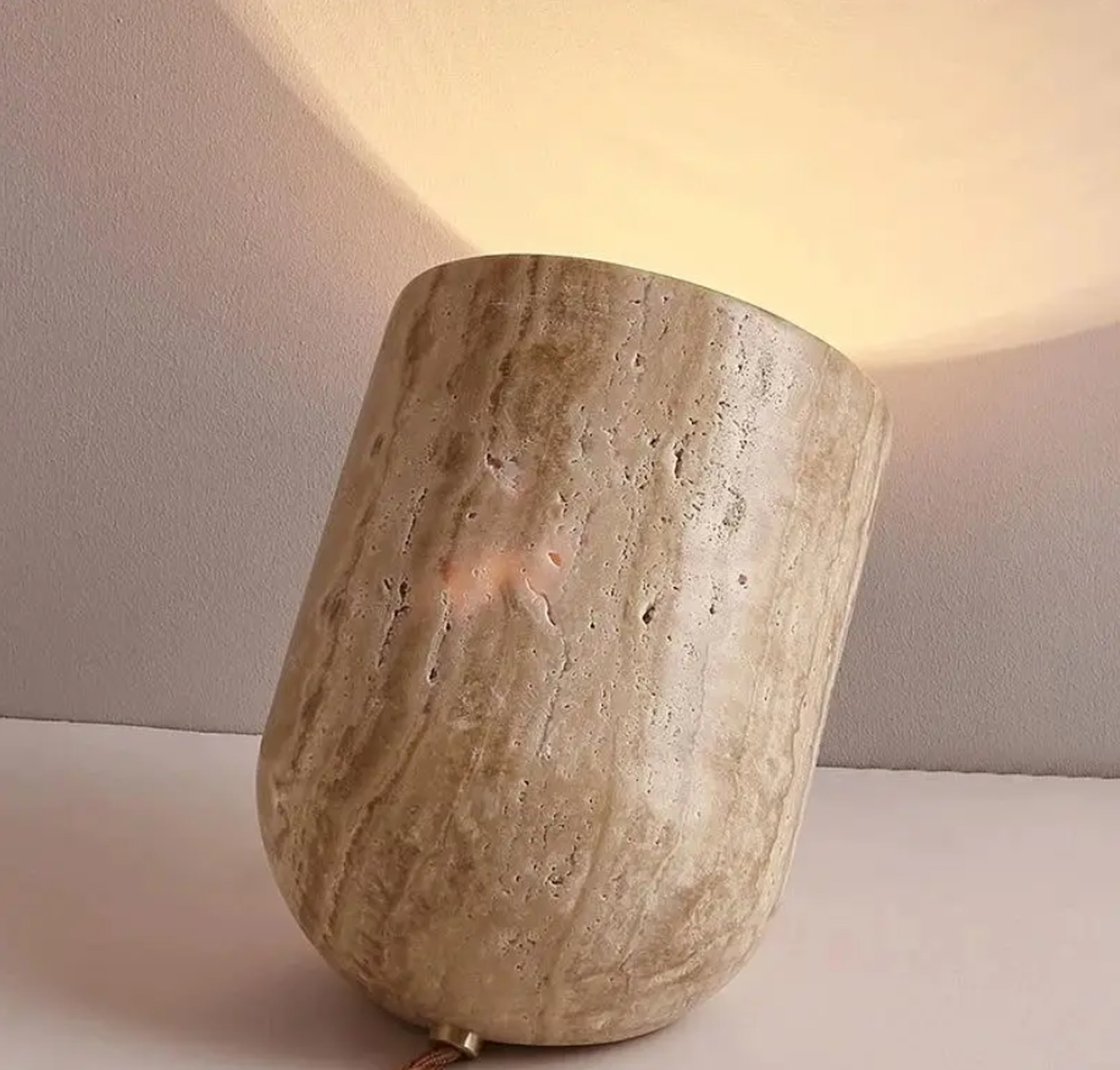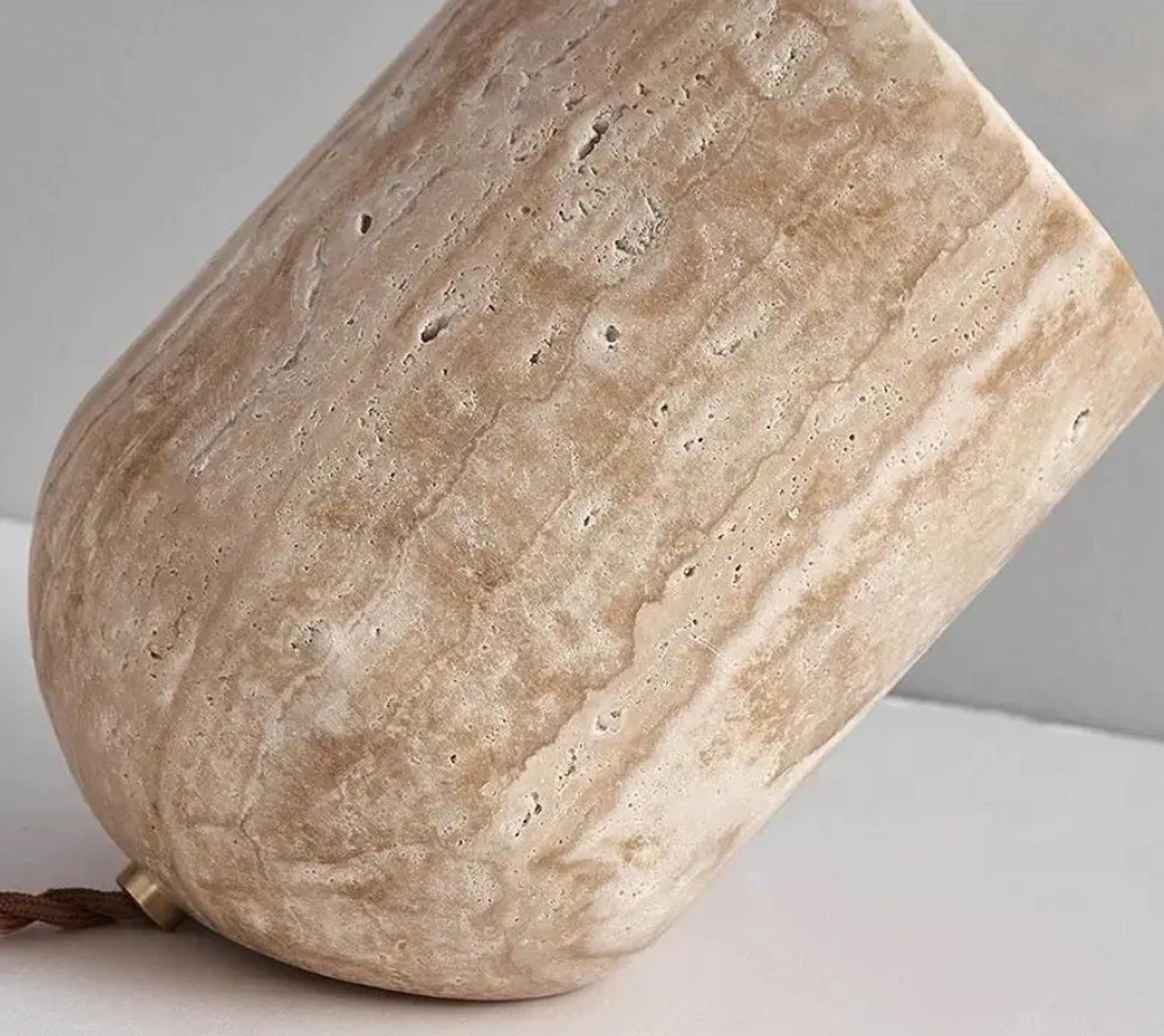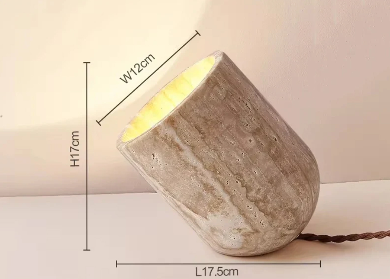 Doğal taşın mat yüzeyi ve kendine özgü damar yapısı, ışığın daha dengeli yayılmasını sağlar. Minimal ve modern tasarımıyla komodin, yan sehpa veya dekoratif yüzeylerde hem fonksiyonel hem de estetik bir tamamlayıcı olarak kullanılabilir.