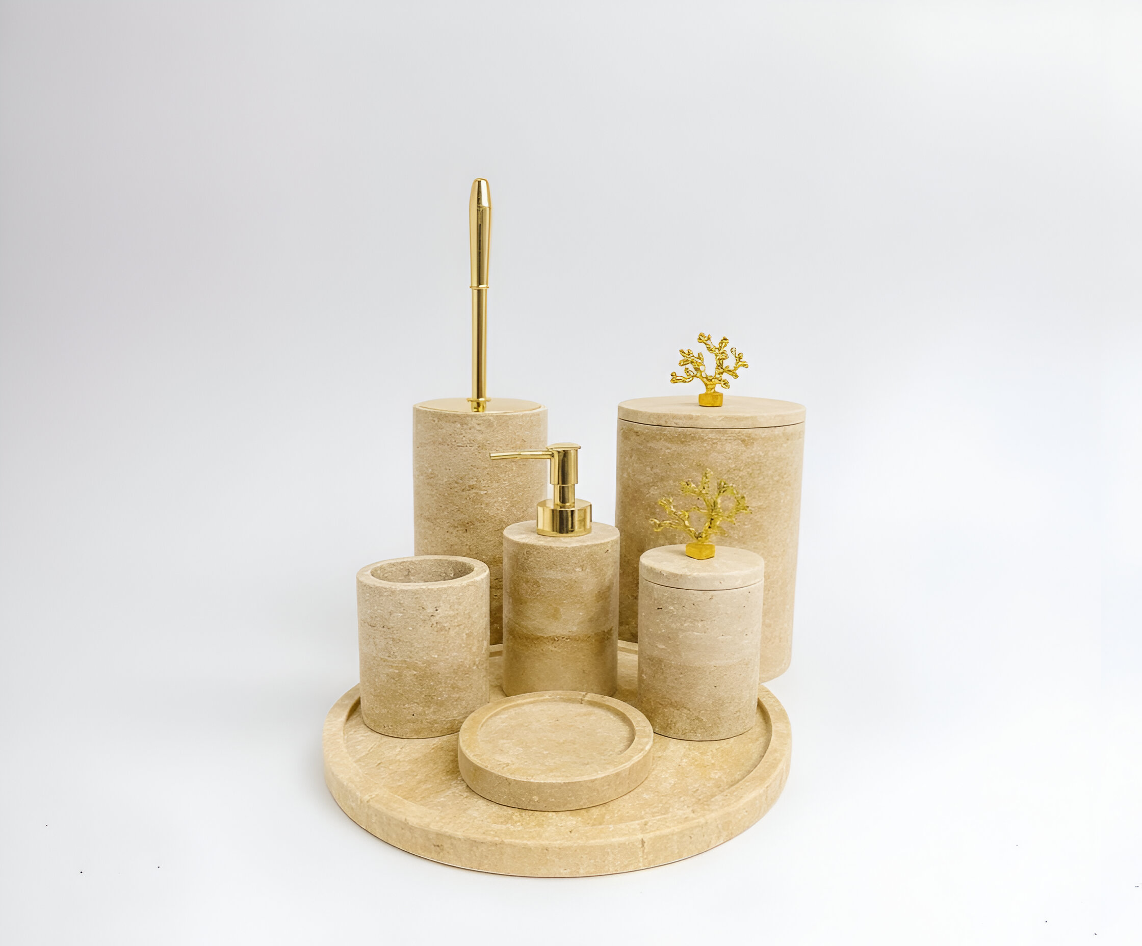 Traverten 7'li Banyo Seti Gold Aksesuar