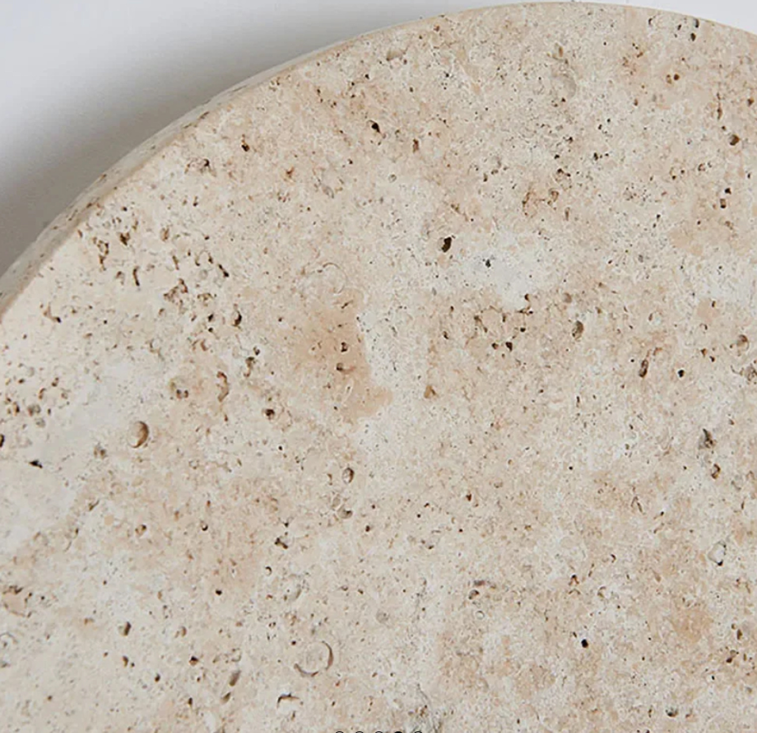 Travertenin kendine özgü damar ve gözenek yapısı, her ürünü benzersiz kılar.